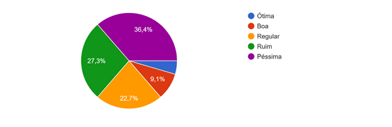 Os indicadores de confiança na gestão da Polícia Científica são alarmantes. A pesquisa revela que 90,9% dos servidores não confiam ou confiam pouco na atual gestão, evidenciando uma crise significativa de legitimidade. Esse cenário é reforçado pela avaliação geral do órgão, em que 63,7% classificam a gestão como “ruim” ou “péssima”, demonstrando insatisfação consolidada e generalizada.